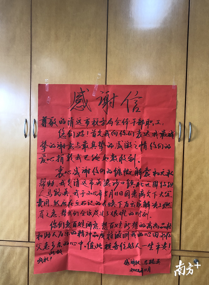 马路英接过捐款时热泪盈眶,感谢道:“是你们给了我第二次生命!”后来,她找人做了锦旗,并亲手写下感谢信,一再请驻村工作队一定要送到市税务局全体干部职工手中,让大家感受到她由衷的谢意。