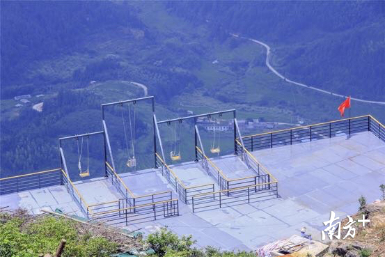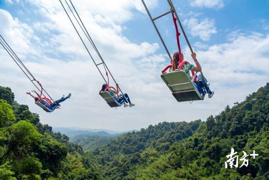 秋千腾空而起,下方就是1400多米的悬崖,让人体验到别样的惊险与刺激……“广东雪山”连山金子山今年在海拔1417米的高峰上建成广东海拔最高的悬崖秋千,日前正式对游客开放,吸引众多游客前来体验。