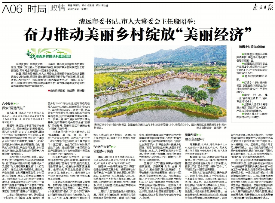 南方日报:清远是广东乡村振兴主战场之一,在全省乡村振兴综合考核中居于各地级市第1名,目前做了哪些探索?有何亮点?
