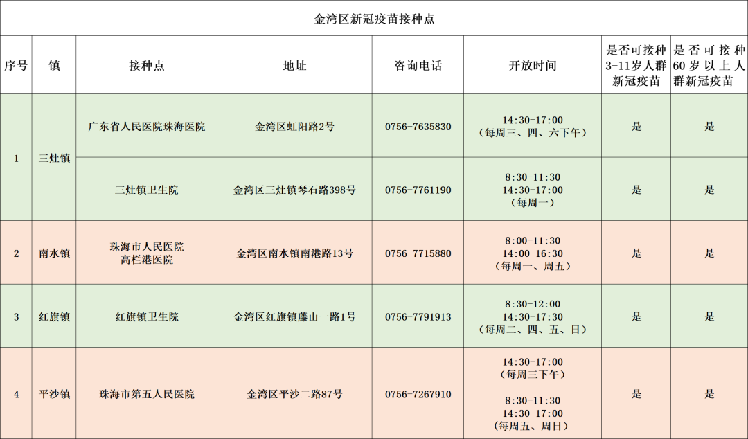 金湾区新冠疫苗接种点如下↓↓↓
