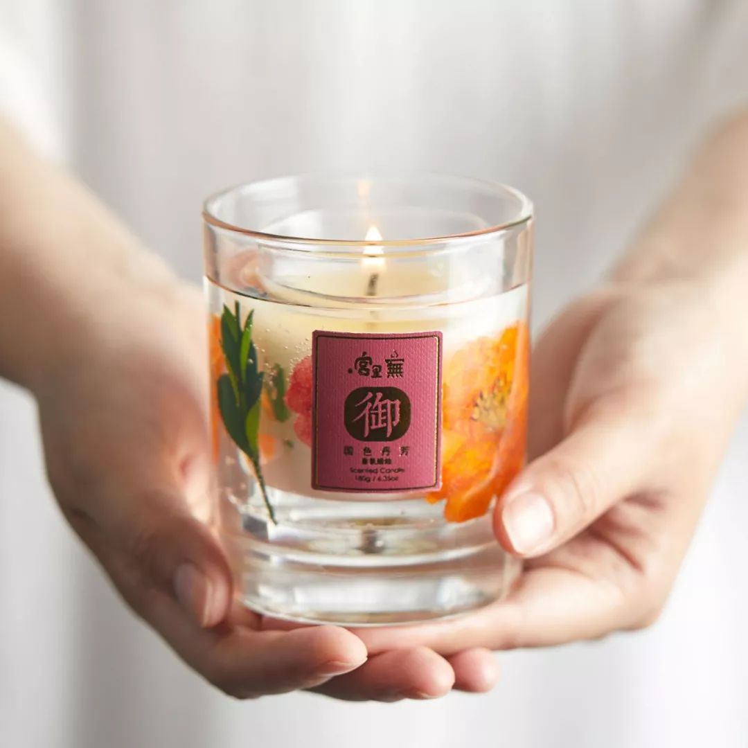它还采用了独特的双层套杯设计:内层是棕榈蜡。外层是香氛凝胶,“融”进了朵朵花瓣、片片绿叶。