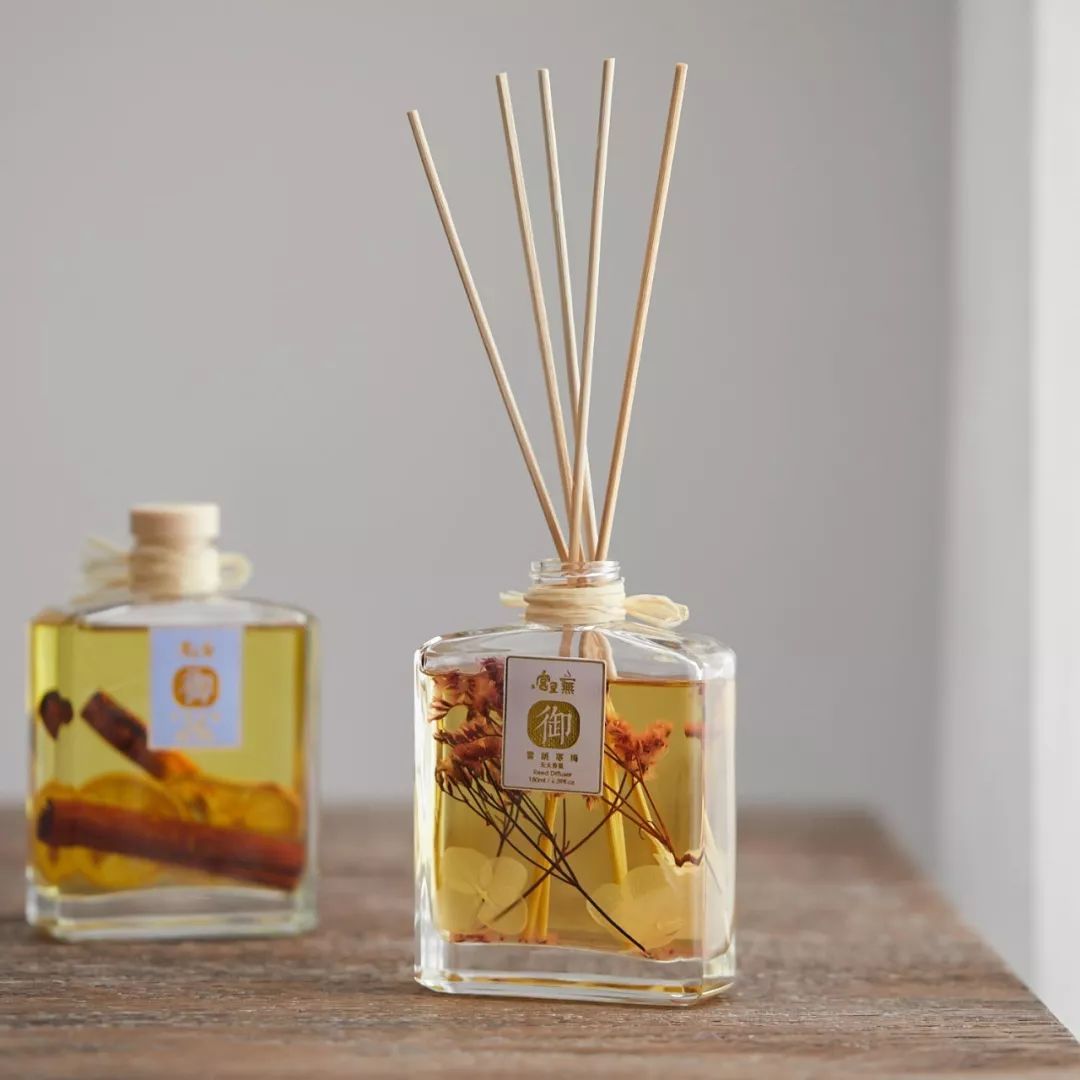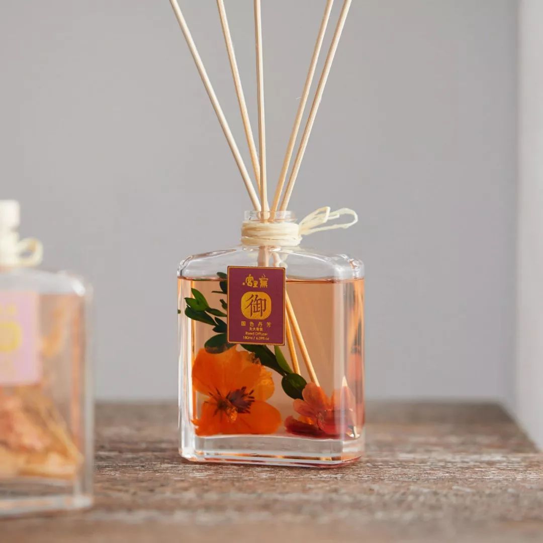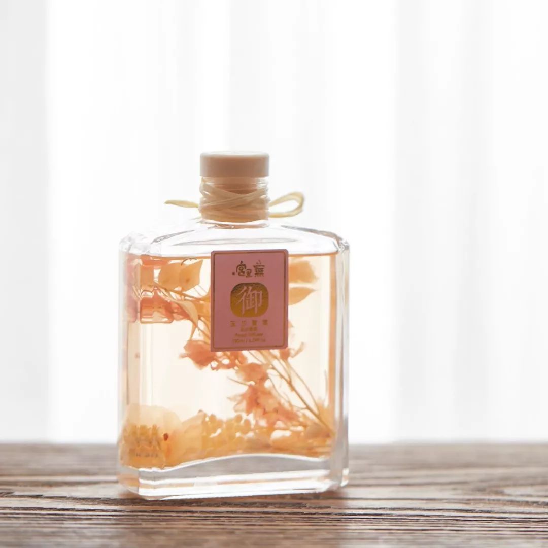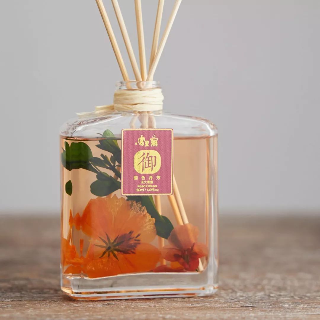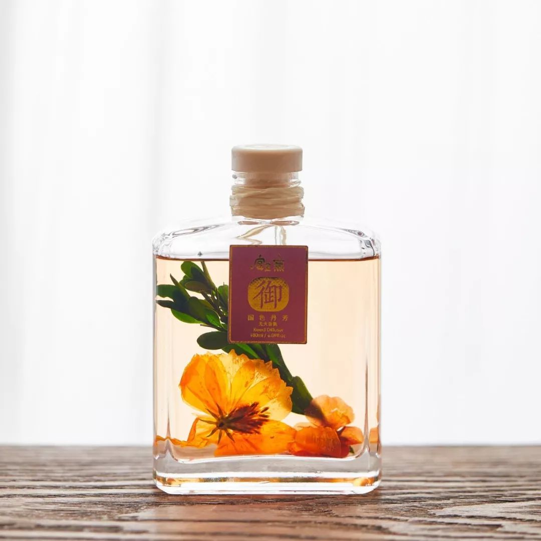 每一瓶“御”系列的无火香氛都要经过手工挑选、精制真实花材融入植物油,制成“永生花”,尽可能保证花朵、叶片的完整度。