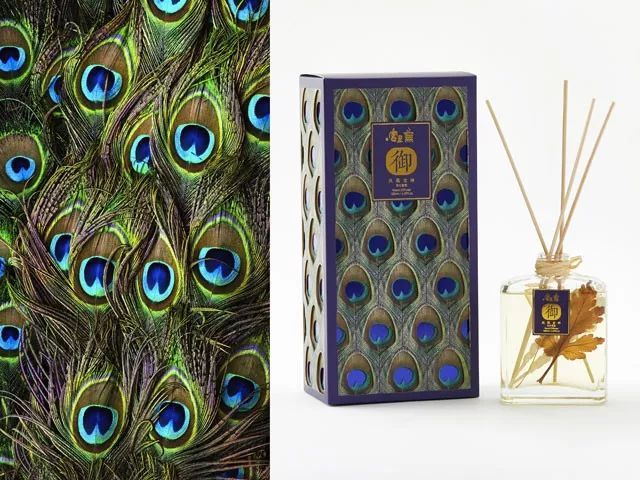 “凤尾龙吟”的包装灵感就取于孔雀尾巴的美丽羽毛。