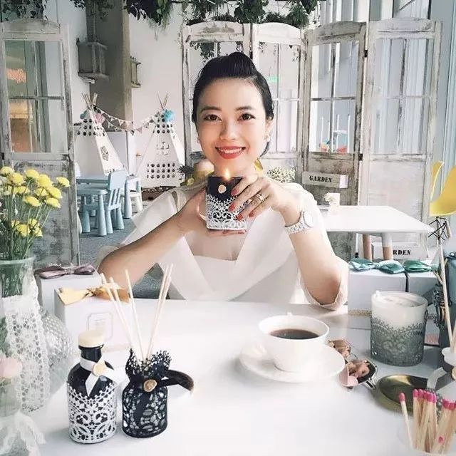 无用享乐创始人郑林晚,手中拿着蕾丝系列香氛蜡烛