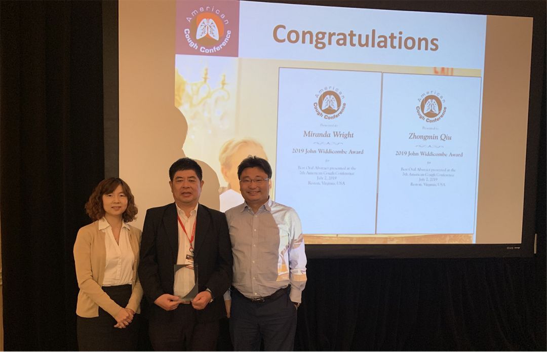 来自上海同济医院的邱忠民教授携团队余莉和徐镶怀参加了口头发言环节,展示了中国慢性咳嗽研究成果,获得了“Presentation of John Widdicombe Award”奖项,也是首个获得该奖项的亚洲学者。