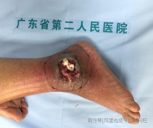痛风石破溃的患者图片(作者提供)