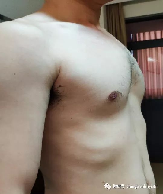 近日我们为一例Wenlin胸患者实施了手术治疗。该患者为成年男性,30岁,自幼发病。早年畸形特征不明显,仅显示上胸部正中前突,曾一度被当做鸡胸。青春期之后,畸形加重,上半胸壁前突,两侧下缘呈弧形向下延伸,正中明显凹陷。早期没有不适,凹陷明显后逐渐出现呼吸系统症状,常于活动后感觉胸闷、心慌、乏力。为治疗畸形,患者曾到多家医院就诊,因畸形复杂始终未得到治疗。患者于数月前联系我们,为彻底治愈畸形而入院。