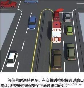 2.在路口遇停止信号等待放行时,消防车前方车辆在确保安全的前提下,可越过停止线停车避让。