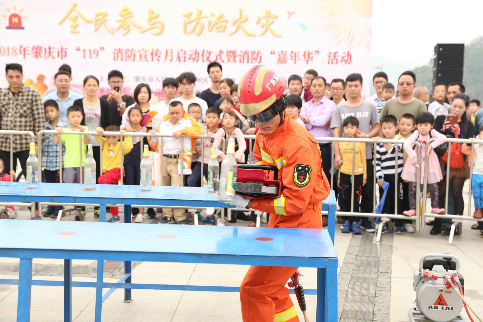 消防知识大冲关、动漫卡通玩偶、肇庆消防建队66周年成果展板、消防操法技能表演……这些极具特色的活动,赚足了观众的眼球和掌声。11月10日上午,肇庆市消防支队在七星岩东门广场举行了2018年“119”消防宣传月启动仪式暨消防“嘉年华”活动,活动吸引了不少家庭参与。