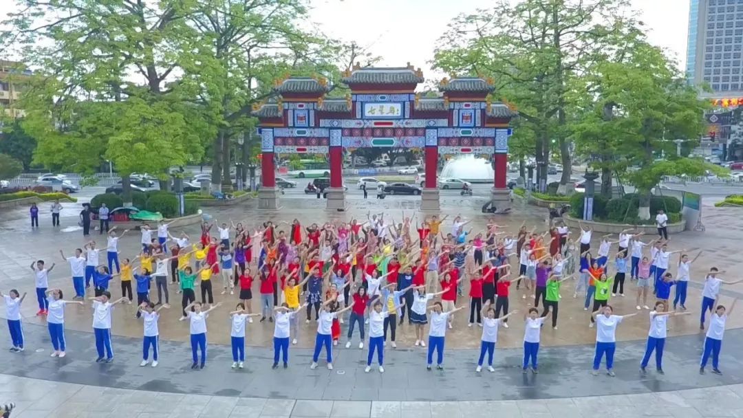 今天“五四青年节”迎来百年纪念日,肇庆星湖风景区牌坊广场上演了一场别出生面的快闪秀。