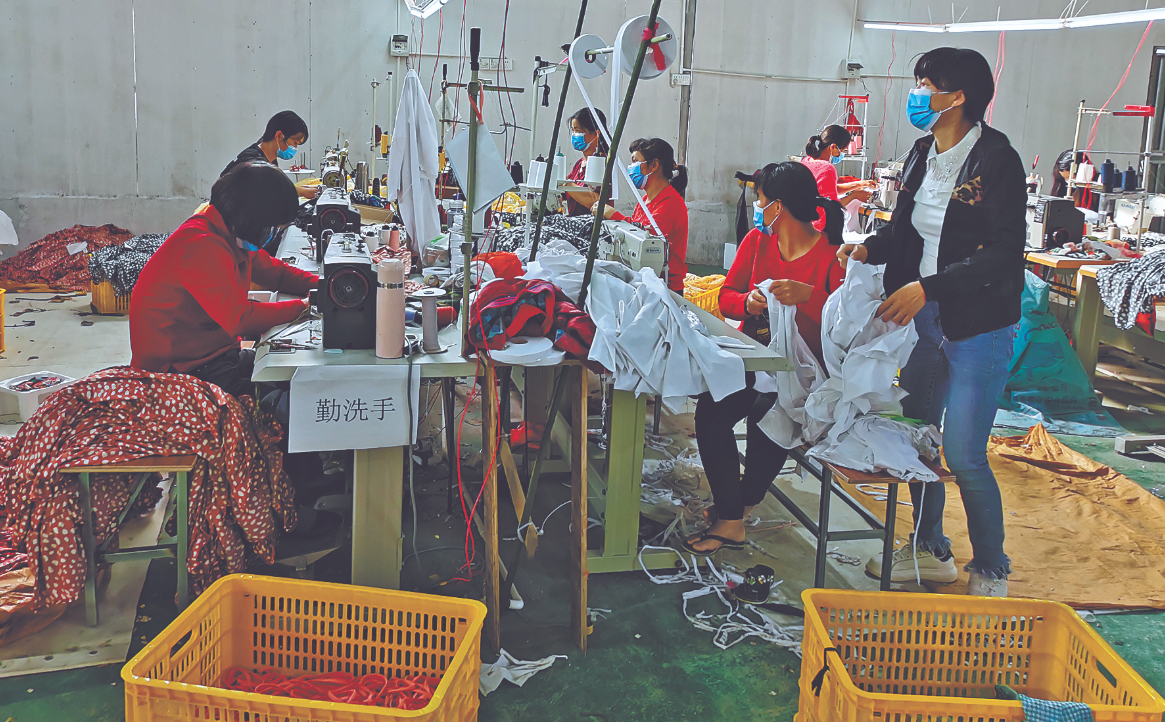鼓励贫困户前来就业的还有企业。位于怀集县马宁镇的卡仕邦制衣厂对前来务工的贫困人员一次性给予每人500元的补助。制衣厂负责人林凡城介绍,工厂2月底复工后,优先录用建档立卡贫困户,为受疫情影响不能外出务工的贫困户就近提供就业岗位。
