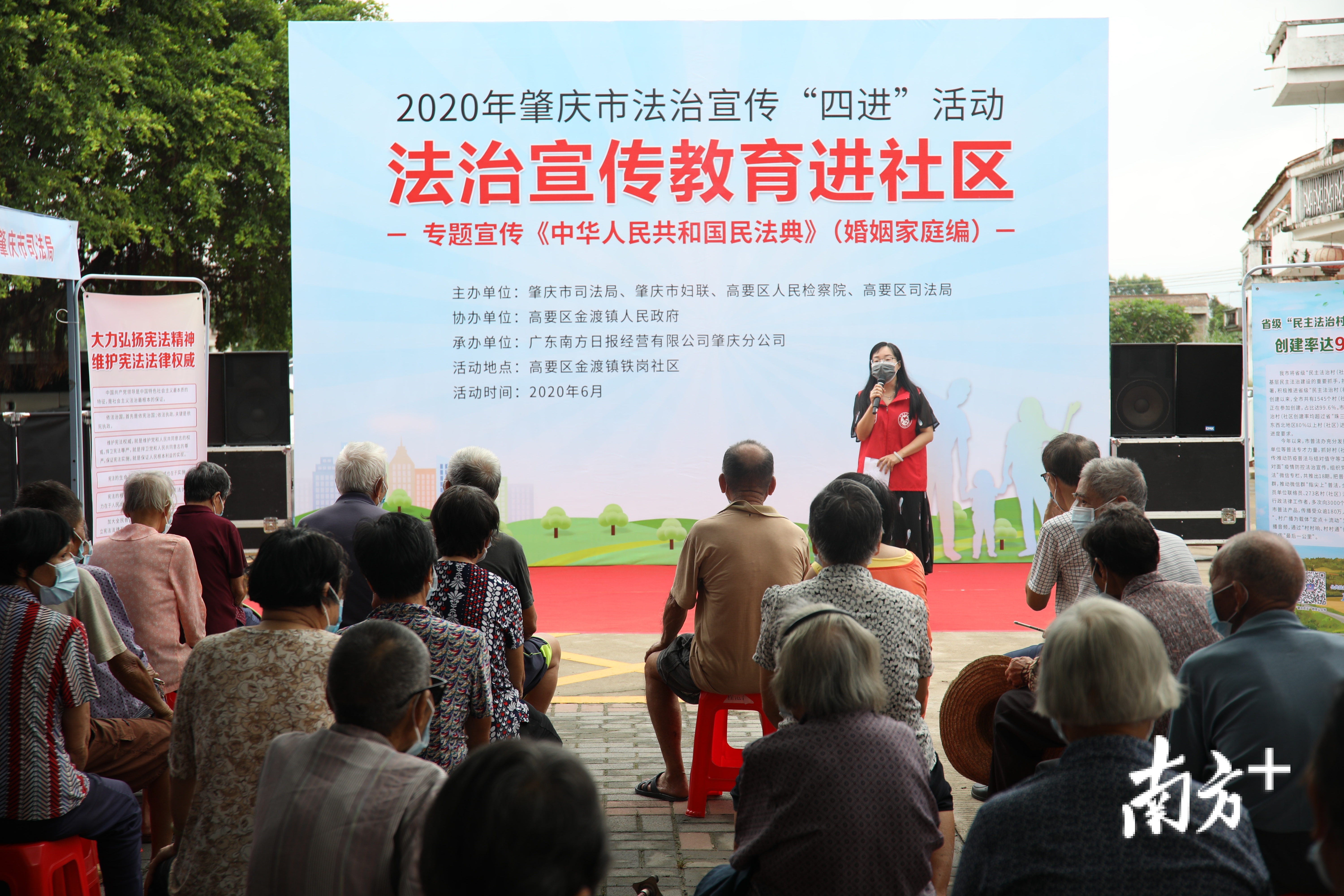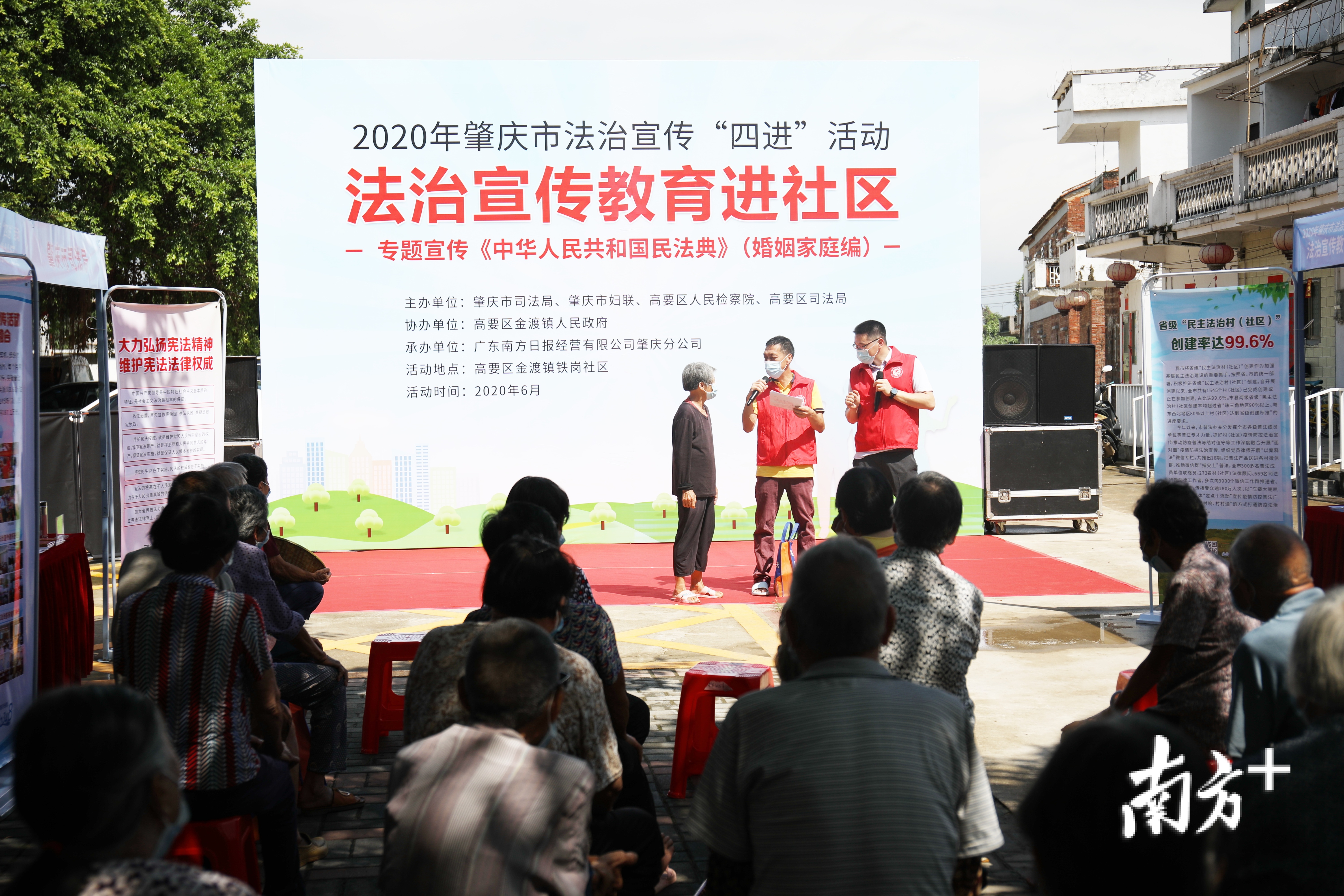 6月16日,2020年肇庆市法治宣传“四进”活动走进高要区金渡镇铁岗社区,肇庆市司法局、高要区人民检察院、高要区司法局、高要区财政局、高要区金渡镇人民政府联合开展了《中华人民共和国民法典》(婚姻家庭编)专题普法宣传。