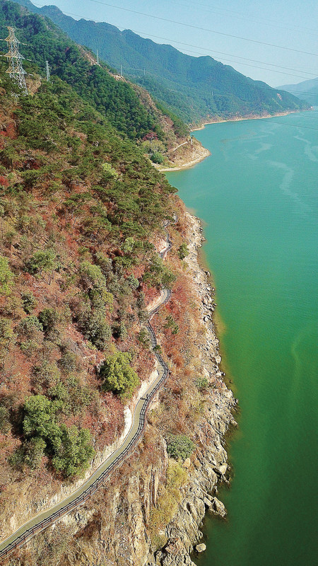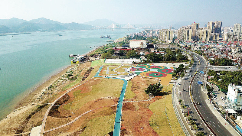 这是一座新的公园,沿江而建,长达10多公里。记者选取其中一段拍摄,从空中看就像水彩画,十分壮观。