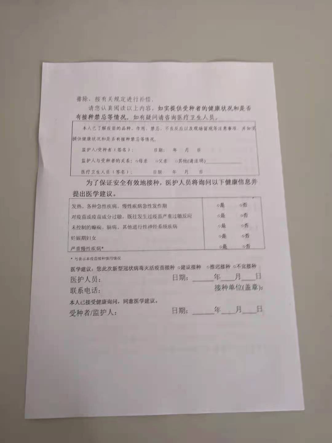 符合要求的接种者,拿到“广东省新型冠状病毒疫苗接种知情同意书”填写,在志愿者引导下分流进入咨询区,再由医生仔细地咨询、调查和评估是否适合接种疫苗,是否需要推迟接种等等;