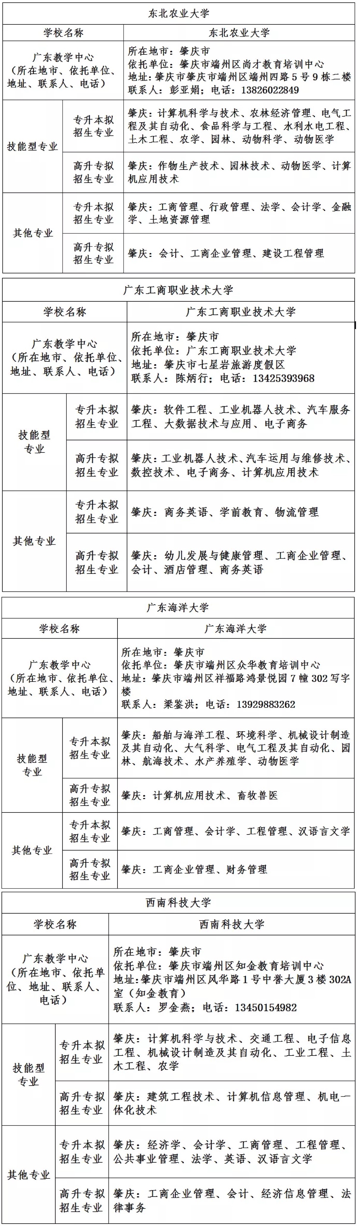 2021肇庆“圆梦计划”与东北农业大学、广东工商职业技术大学、广东海洋大学、西南科技大学合作。