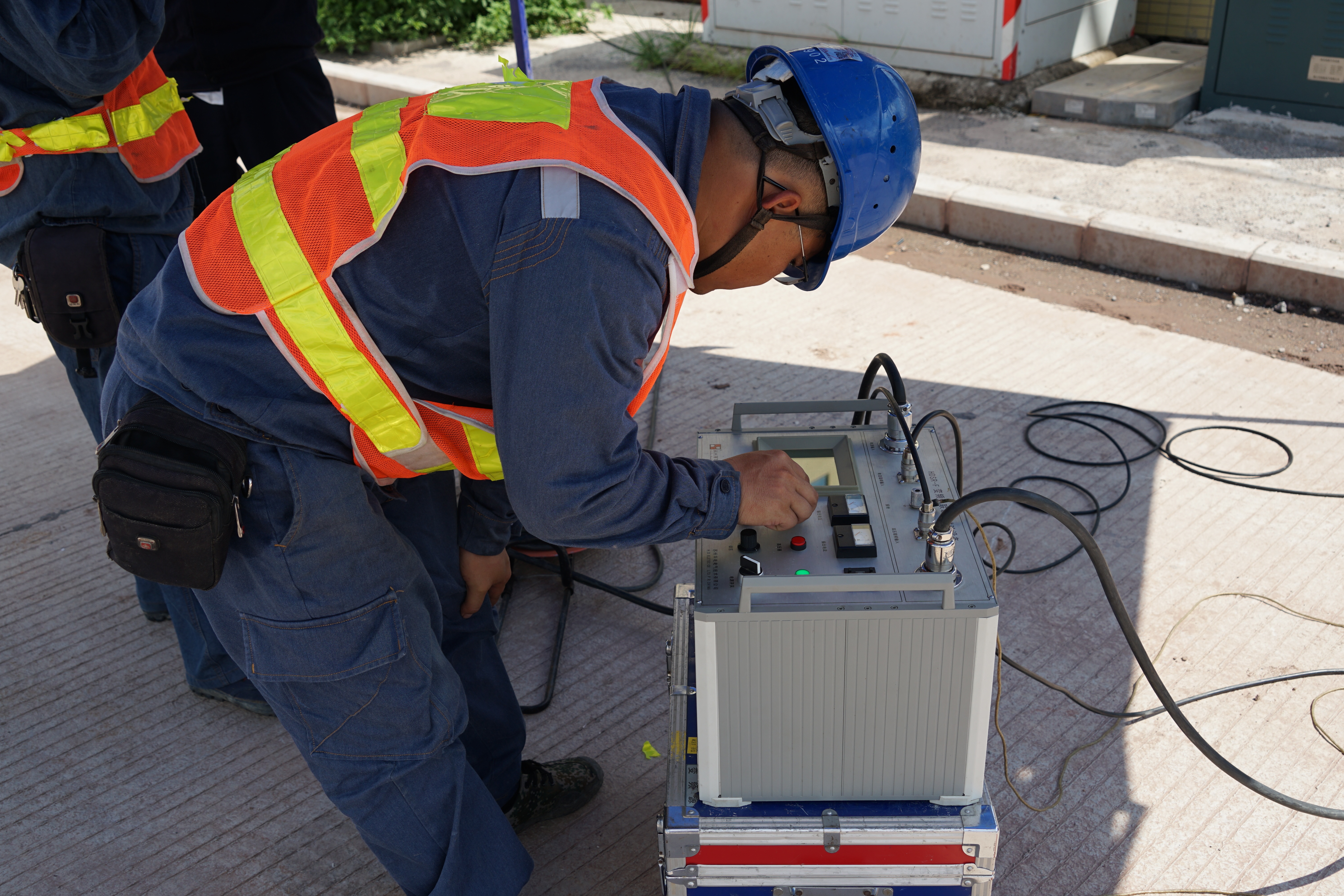 怀集供电局党员突击队对新建配电房进行调试。潘华骏 摄 通讯员/受访者 潘华骏 供图