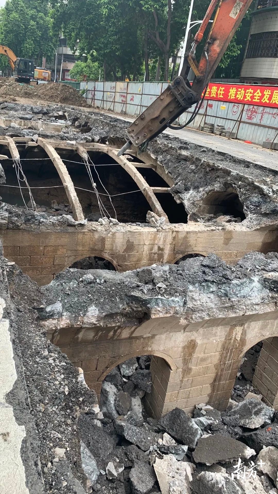 2020年4月,在康乐北路与翠湖路交界处,项目组在施工过程中发现破坏了一个“Y”形石砌箱涵,由于其建设年代久远,箱涵质量较差,如果按照原开挖方案实施势必占用更大的道路范围,延长施工工期。为尽快抢通道路,肇水集团迅速安排预制钢筋混凝土箱涵,组织三台大型抽水机抽排导流,施工人员加班加点,终于在最短时间内解决这个施工点的难题。