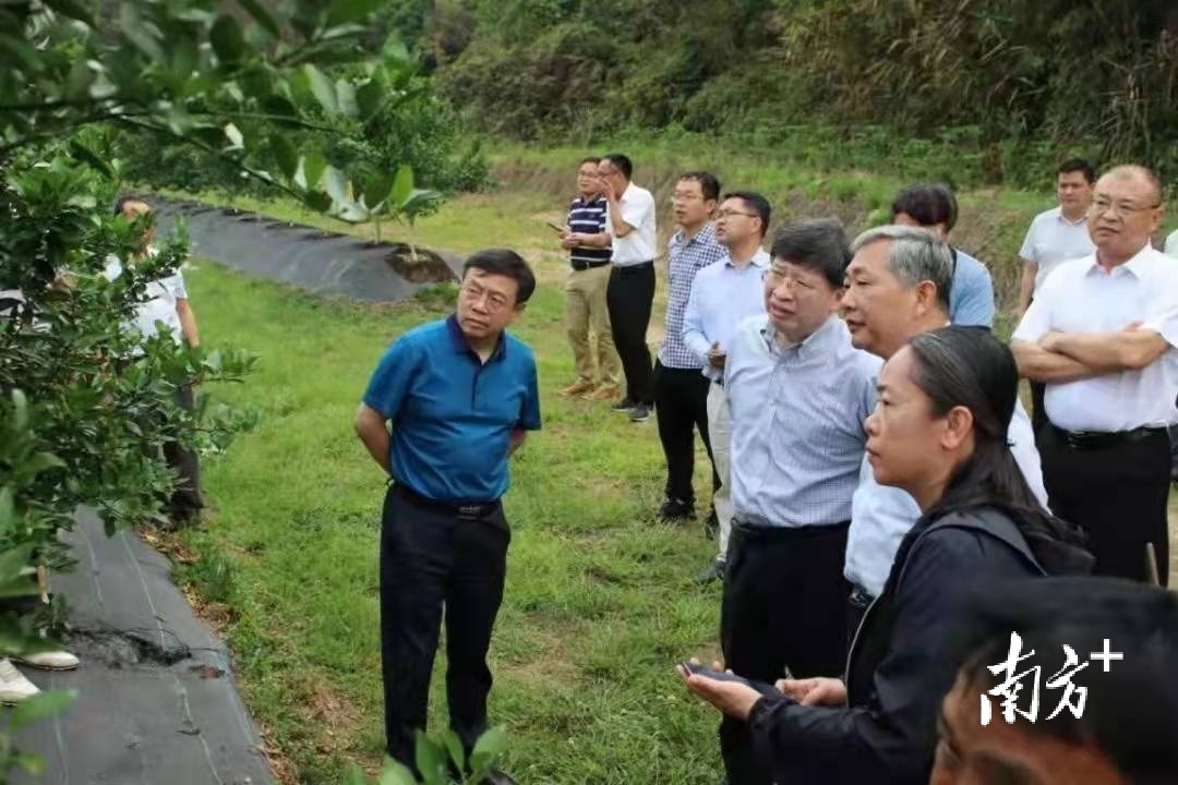 邓秀新院士等专家人才在德庆贡柑现代农业产业园柑橘大田指导病虫害防治。