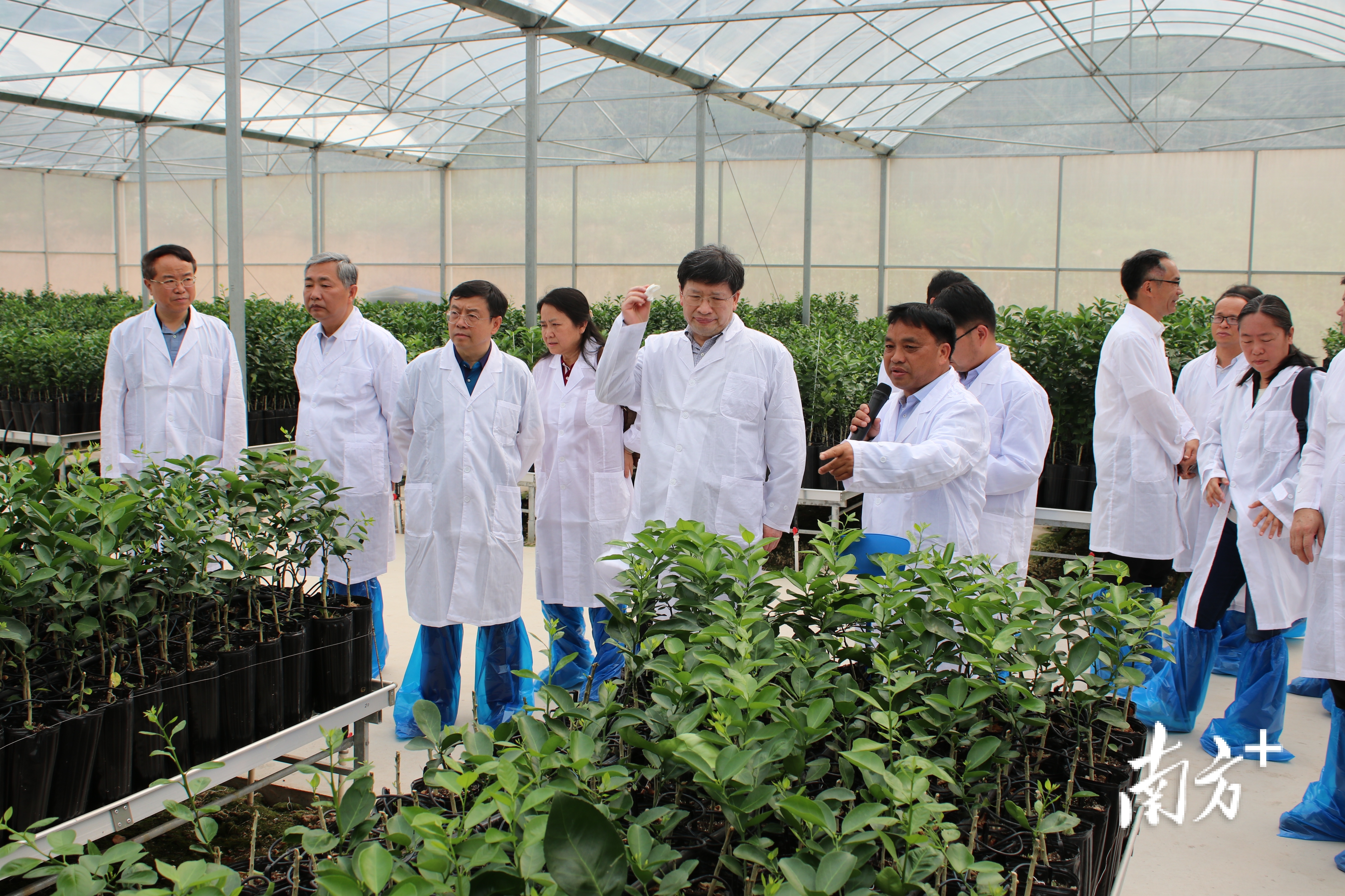 邓秀新院士等专家人才在德庆县贡柑现代农业产业园为无病毒苗木提供技术指导。