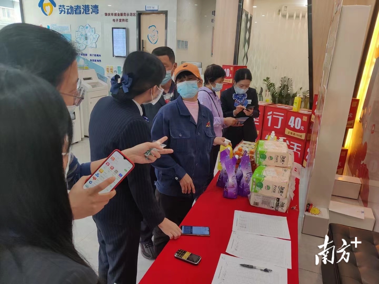 肇庆建行工作人员走进快餐店指导食客下载并体验“建行生活”APP。
