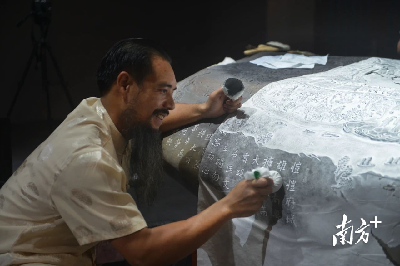 传拓技艺是我国古代长期使用的一种行之有效的复制方法。肇庆地域传承的传拓技艺注重使用端砚名坑磨墨,研墨不滞,发墨快,墨汁细滑,颜色经久不变。