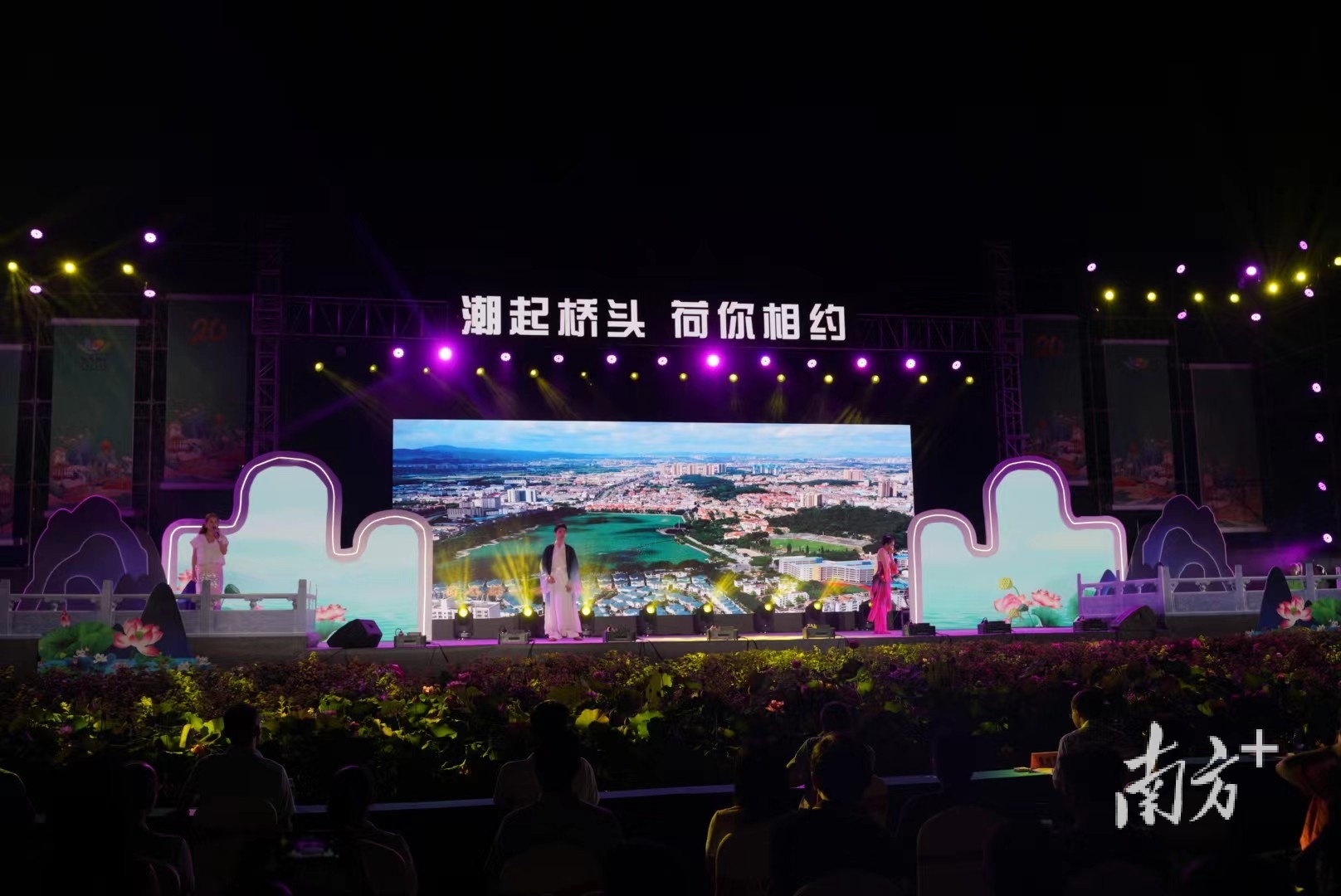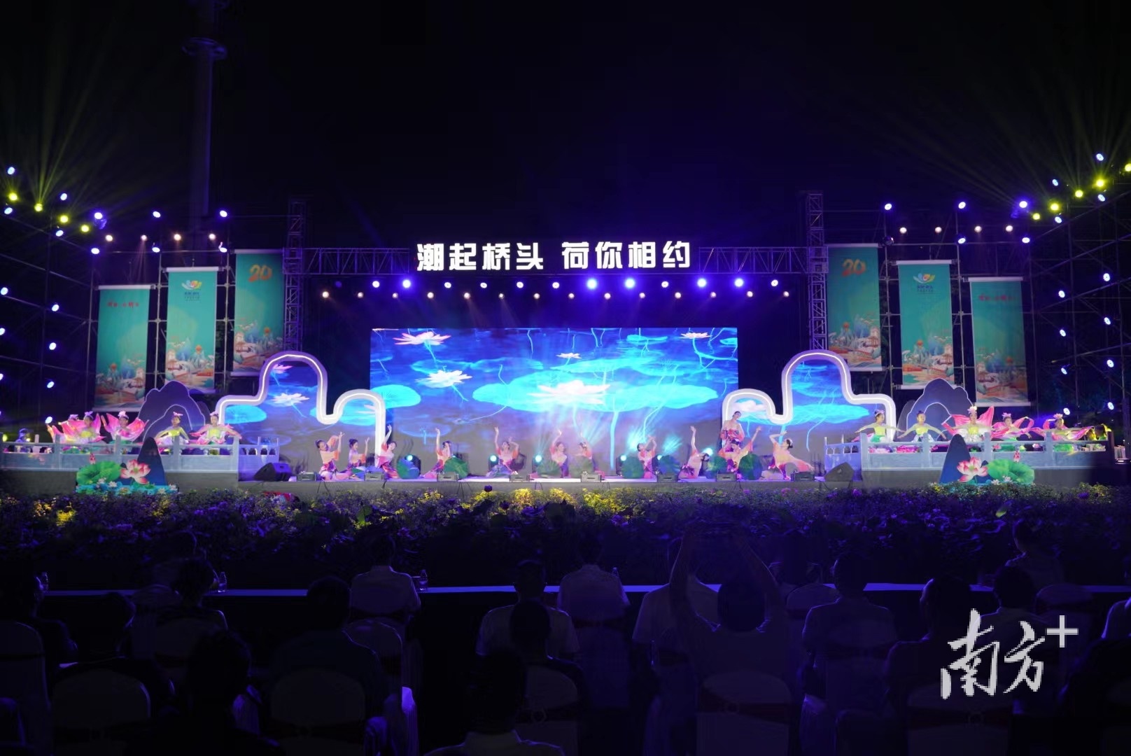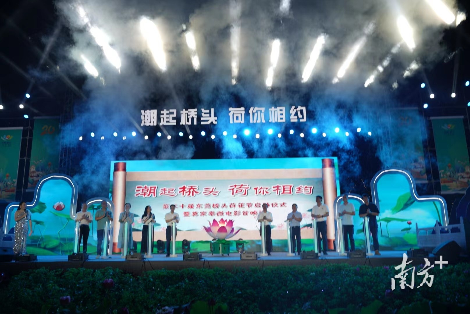 6月10日晚,桥头镇荷花文旅产业园内荷香四溢、灯光璀璨、热闹非凡。随着荷花灯饰缓缓亮起,第二十届东莞桥头荷花节启动。