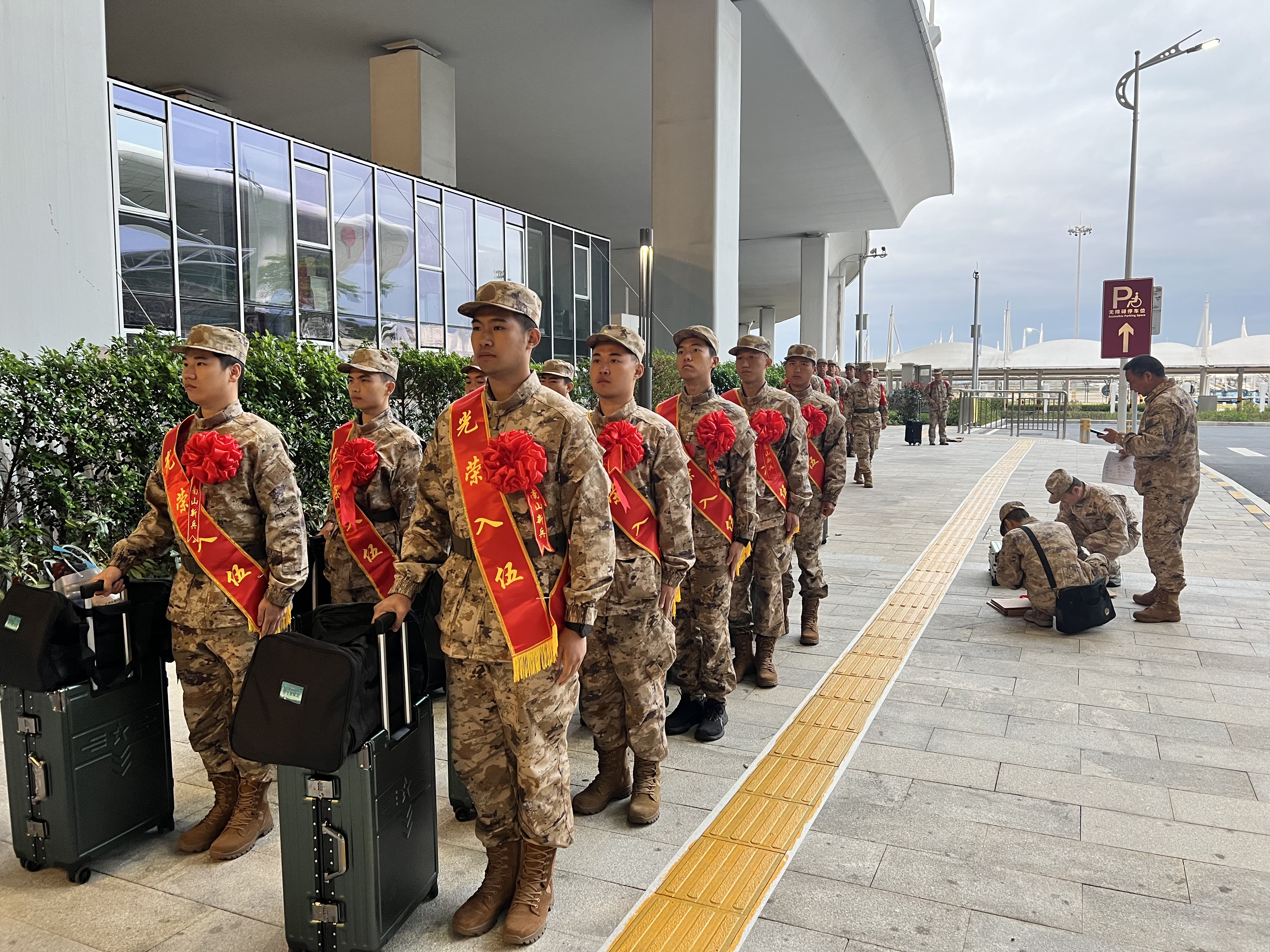 近日,深圳市南山区以创新运输模式为百余名新兵壮行。在深圳宝安国际机场航站楼与深圳北站候车大厅,身着21式星空迷彩的新兵们通过航空、铁路双通道启程,标志着南山区征兵运输保障体系迈入立体化新阶段。