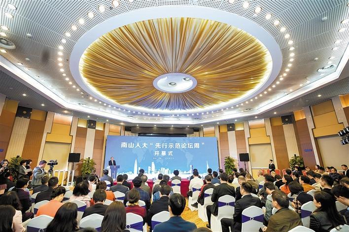 近日,南山区人大结合《中共中央 国务院关于支持深圳建设中国特色社会主义先行示范区的意见》对深圳提出的“五大战略定位”和“五个率先”重点任务,持续5天举办了“先行示范论坛周”活动,共谋南山先行示范勇当尖兵的奋进之路。