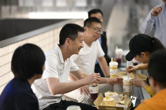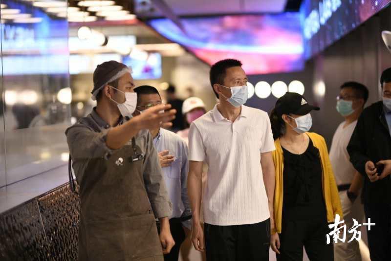 黄湘岳一行经体温检测并登记后进入喜茶门店考察,黄区长向门店工作人员详细了解喜茶品牌文化及设计理念。随后,黄湘岳通过手机微信小程序现场下单,亲自体验喜茶在科技零售、无接触式举措并带头消费,对喜茶在产品研发的努力予以充分肯定。在严防严控的前提下,南山各商业载体、商场、邻里中心等正慢慢恢复往日的生机和活力。餐饮业堂食逐步恢复,熟悉的 " 烟火气 " 渐渐回来了。