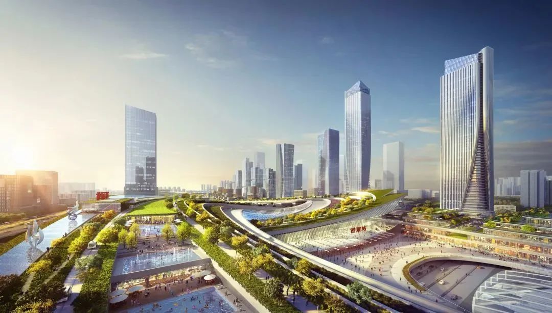 ▲枢纽片区西侧效果图