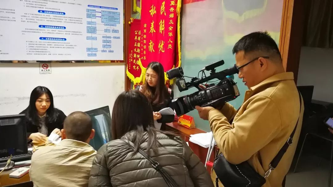 ▲媒体记者到南海区法律援助处窗口进行采访活动