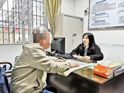 ▲法援工作人员查看受援人的相关材料,并了解情况
