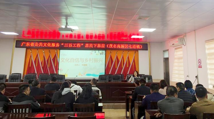 3月8日上午,广东省公共文化服务“三百工程”惠民下基层2019年茂名首场讲座在茂名国家高新区七迳镇举行。茂名市委党校市情研究中心副主任、陈童敏博士作《文化自信与乡村振兴》专题讲座。