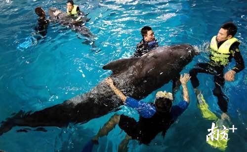 两个多小时的紧张营救中,10余名热心游客、渔民群众顶着烈日尝试了多种方法。最后,由滨海渔政大队安排渔船把鲸豚送出1海里海域中,鲸豚终于安全回家。