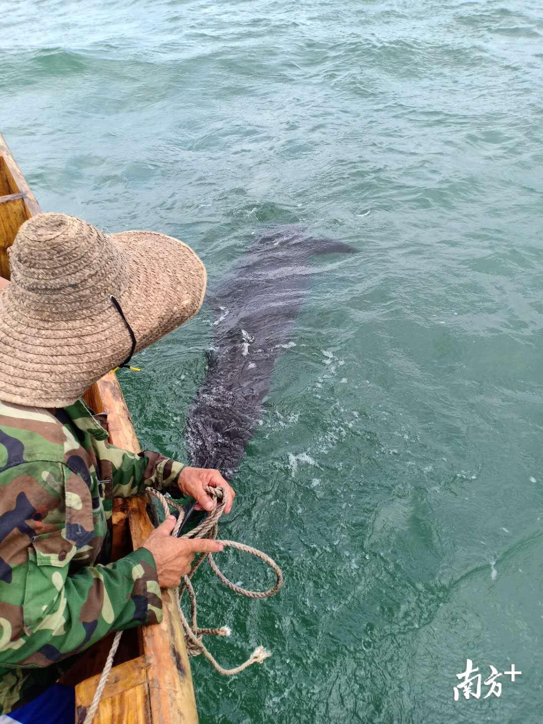 茂名市农业农村局借此呼吁广大群众,共同关注珍稀濒危海洋生物,保护好水生野生动物,如果发现它们误闯渔网或网箱,应第一时间予以放生,若发现受伤或死亡的水生野生保护动物,应立即报告当地渔业渔政部门。