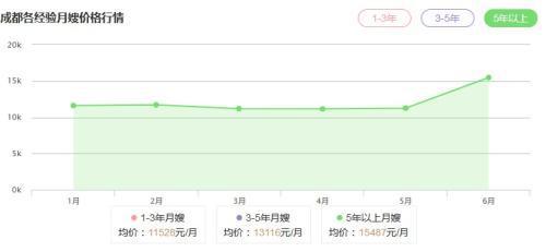 某月嫂中介平台公开的成都月嫂价格排行。从表中可看出,拥有五年以上从业经验的月嫂,均价已超过15000元