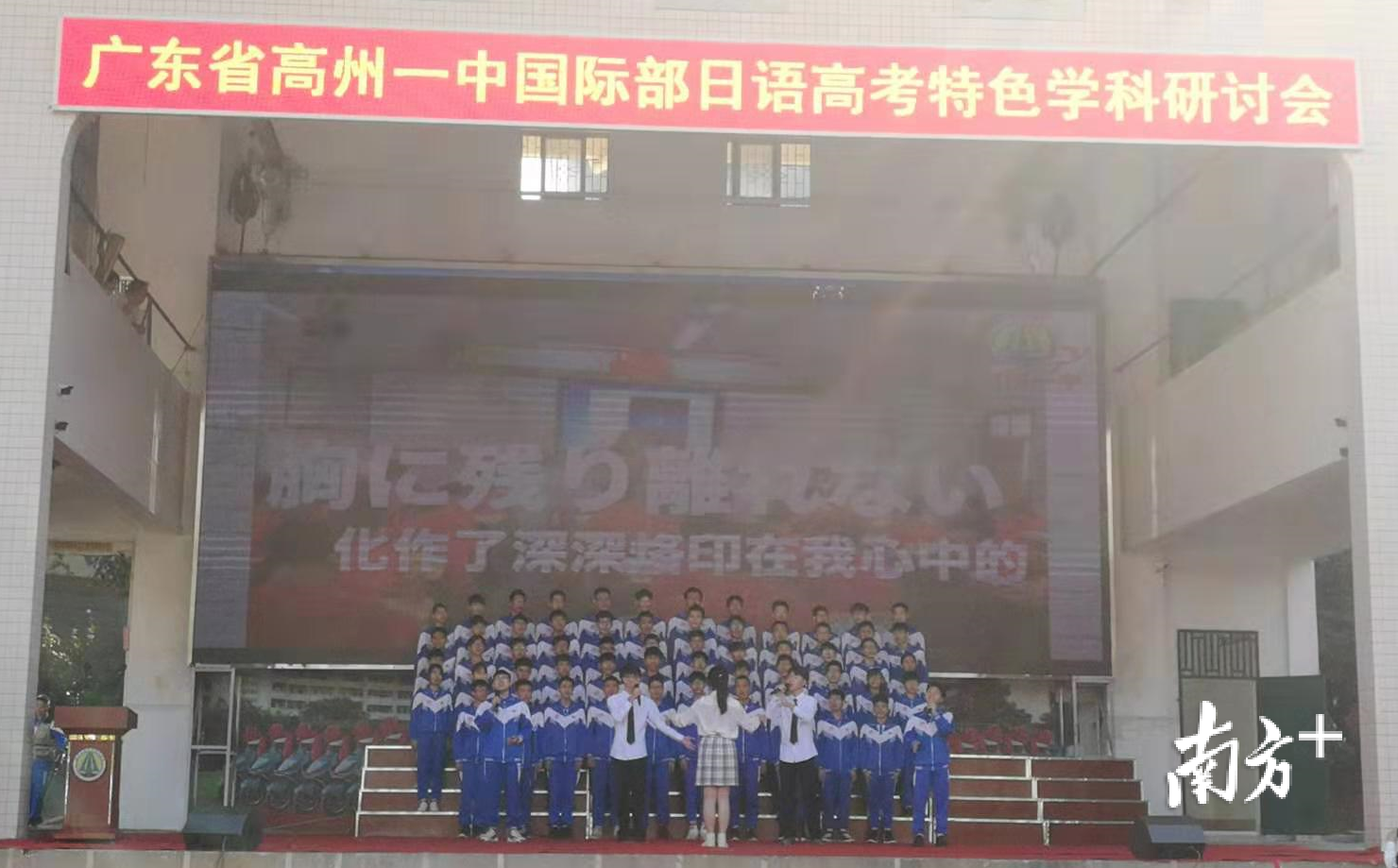 活动现场,高州一中日语班学生在活动现场表演了日语歌曲《柠檬》合唱、日语朗诵《门》和日语电影配音,有趣的节目引得全场热烈鼓掌。高州市第一中学校长杜锡孟说,在“教育面向世界,教育面向未来”的大背景下,高州一中国际部借助北二外强有力的支持,努力打造“日语特色学科基地校”,将为学生提供更多的选择机会。