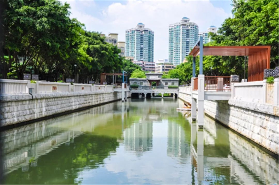 屈龙角涌全长3.6公里,是石湾十条主干河涌之一。它穿惠景城而过,流淌着“老石湾”市民满满的情怀。经过整治改造,屈龙角涌由“臭水涌”变身亮点河涌,一湾碧水蜿蜒流淌,两旁景观古色古香,河涌整体观景效果大大提升。