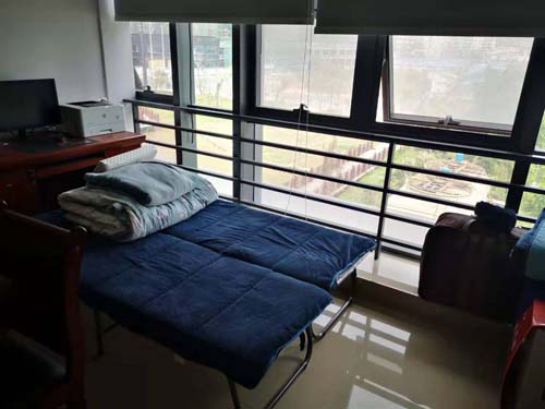 中午就在办公室支起一张小床休息 杨斯萍摄