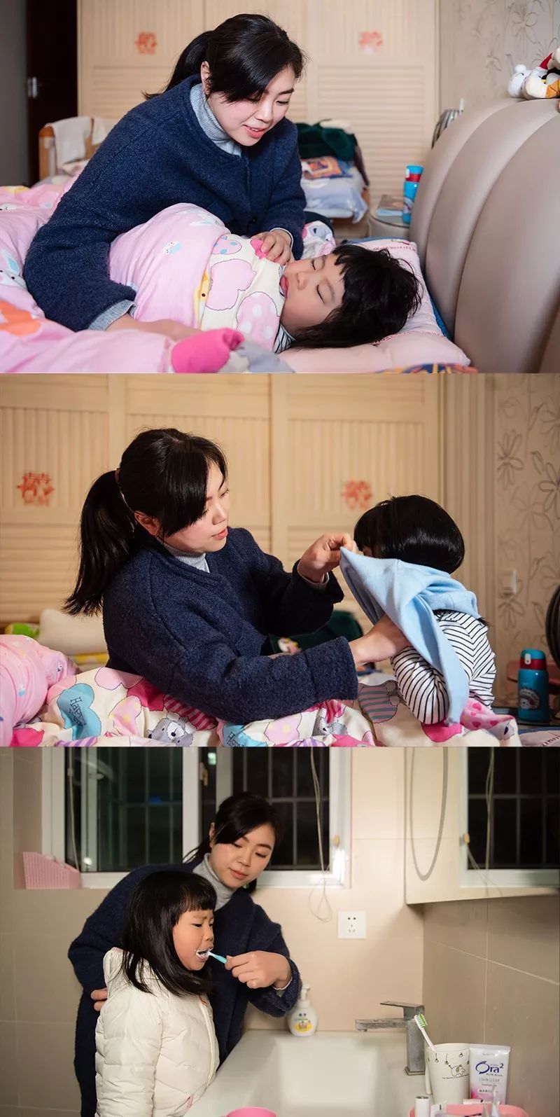 早上7:30分,叫女儿起床,为女儿梳洗。