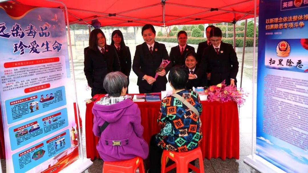 3月5日,邱晓榕副检察长带领案管中心负责人陈燕梅等一行八名女干警,通过市妇联在市人民广场主办的以“‘你好新时代’——巾帼展风采 法治我践行”为主题的“三八”维权周普法宣传活动为平台,开展普法宣传活动,为增强广大群众法治意识,共建平安和谐家庭,共建平安英德助一臂之力。活动现场,在邱晓榕副检察长的组织下,我院女干警冒着大雨天气,积极行动,结合我院相关职能,向在场的人民群众提供法律咨询,并派发预防未成年人犯罪、扫黑除恶等专项行动的宣传资料,使广大群众进一步了解检察院的工作职能。此外,我院干警还向前来咨询的女性群众献上康乃馨,以表节日的祝福。
