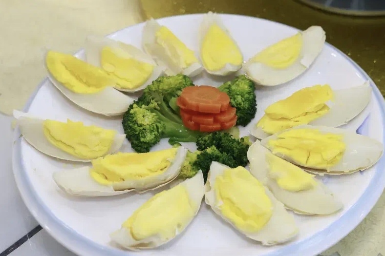 鹅蛋的营养价值比较高,含有人体所需要的钙铁和磷等多种营养元素,能起到补中益气的作用。肥美可口,咸香适中。每一口都蕴含着浓郁的鹅香,让你回味无穷。