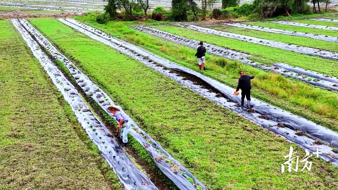 近日,笔者来到丹济村,只见宽阔的田野上已经种上了南瓜苗,并铺上薄膜进行保暖,农民们正在进行除草和补种工作。据阳江市益信农业科技有限公司有关负责人介绍,今年冬种生产提前谋划,在收割完玉米后马上着手准备冬种工作,对土地进行平整和整垄。
