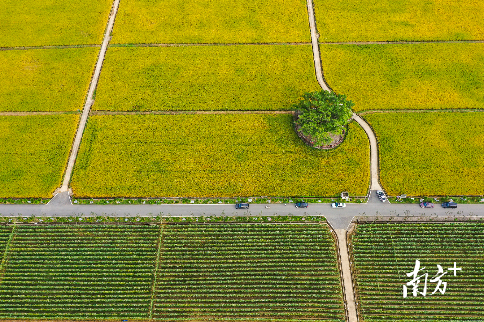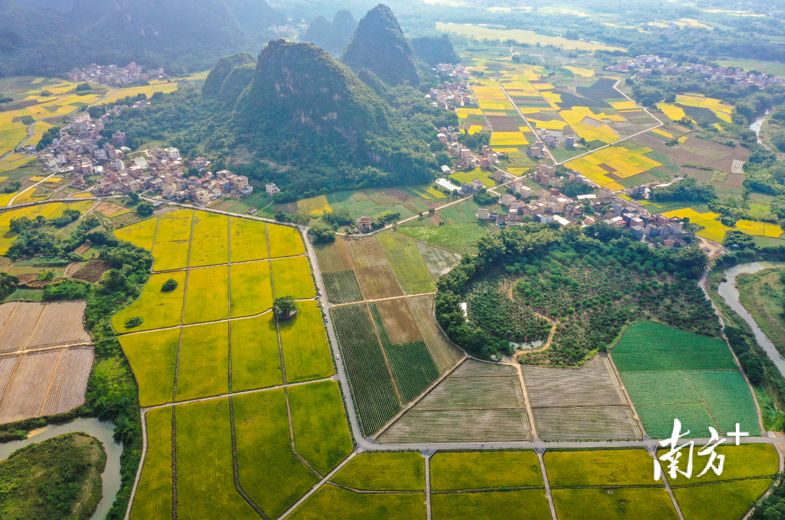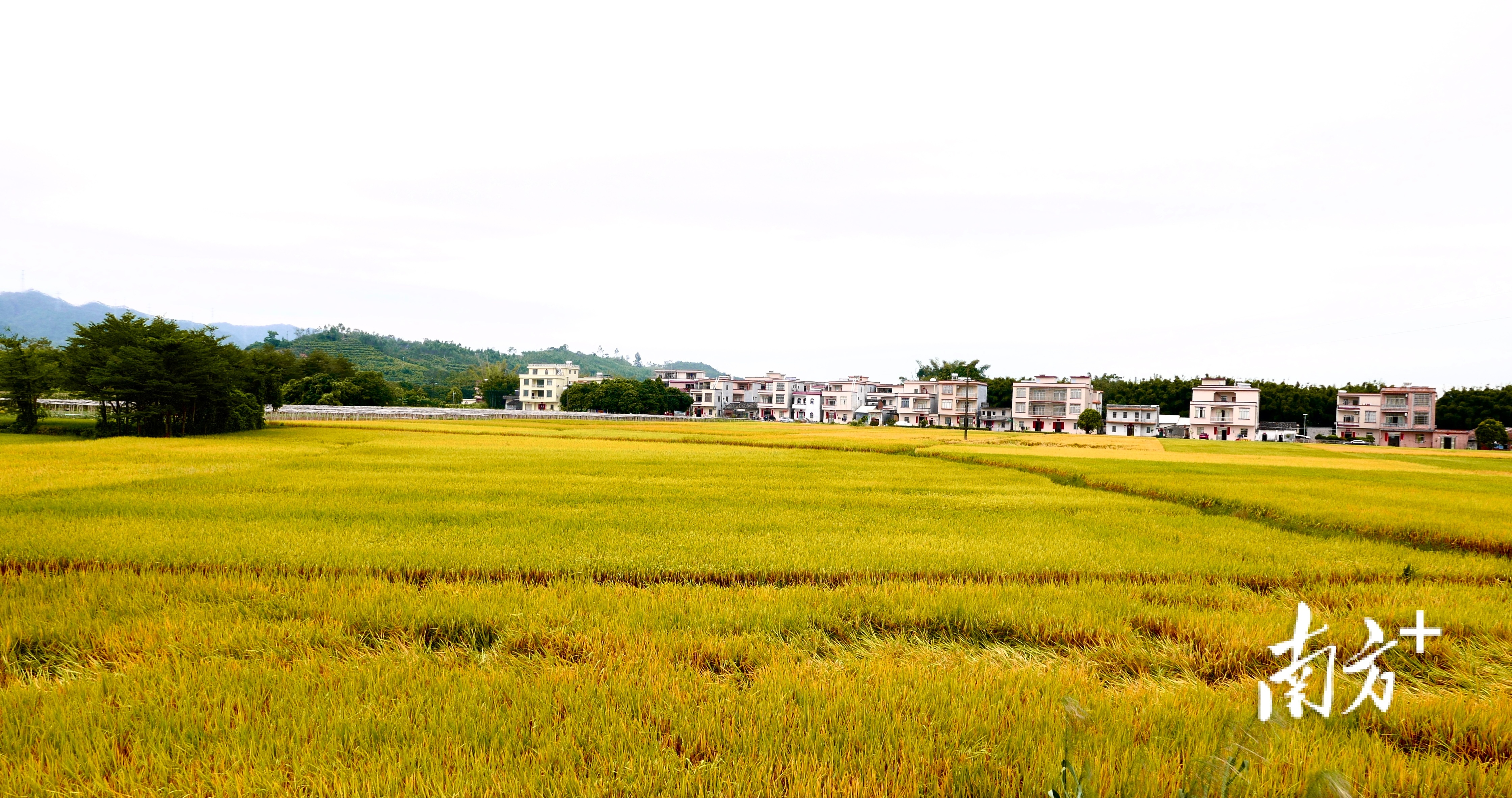 在春湾镇那星村,连片晚稻构成一幅“丰景图”。蓝军 摄