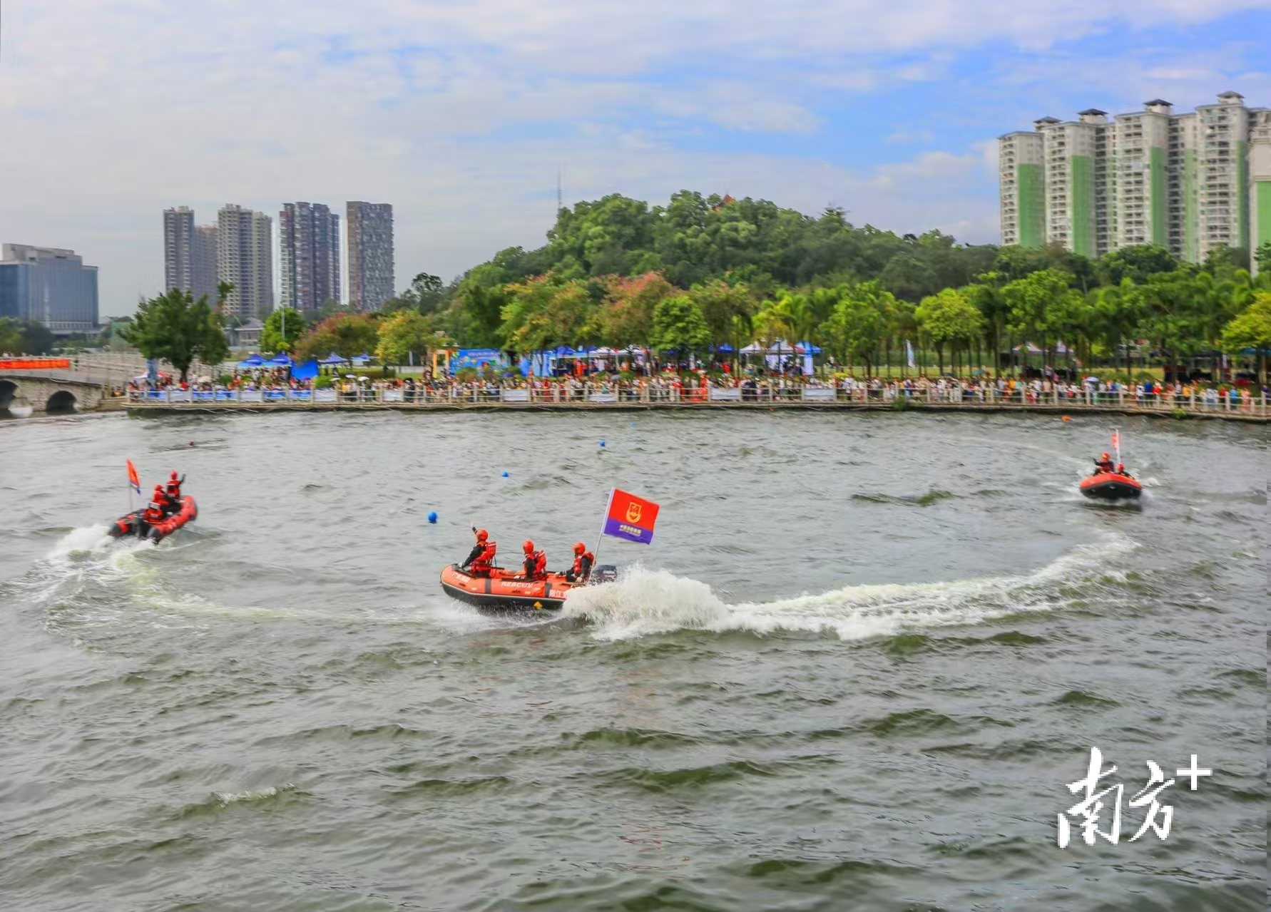 “妈妈,看!有人掉进了水里。”孩子们激动地指向湖面。眼前,消防员们驾驶着冲锋舟如箭般划过,快速有序地进行组装编队、无人机侦察、抛投、舟艇救援等科目,引发观众阵阵惊呼。