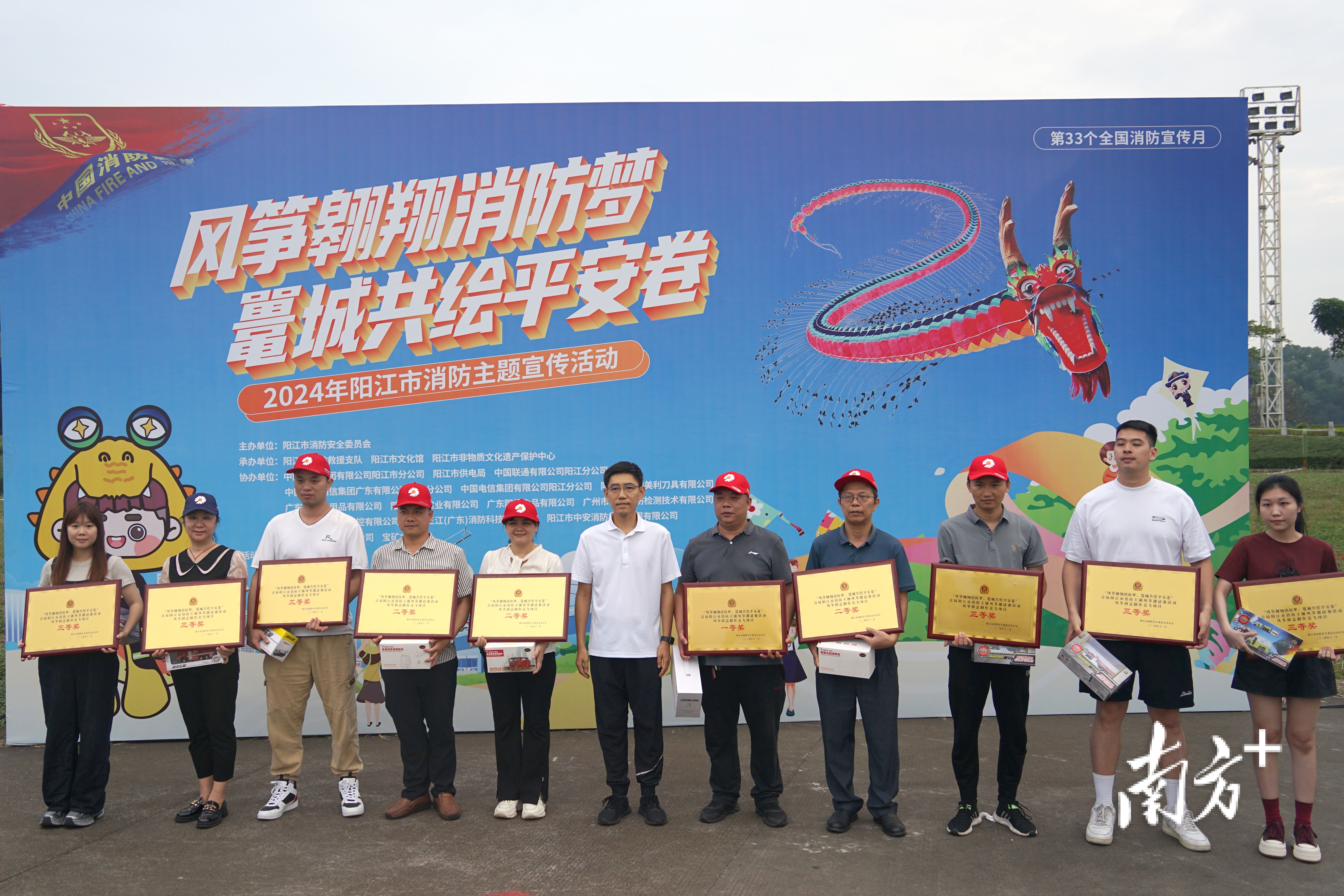 经过2个小时的激烈比拼,最终来自阳江市交通运输局代表队夺得首届阳江市消防主题风筝邀请赛活动风筝创意制作竞飞项目一等奖;阳江市城市投资集团有限公司、市供销社代表队获得二等奖;阳江市人民医院代表队等6个单位、企业获得三等奖。活动还评选出DIY创意风筝达人奖10名,“火焰蓝”IP风筝翱翔达人10名。