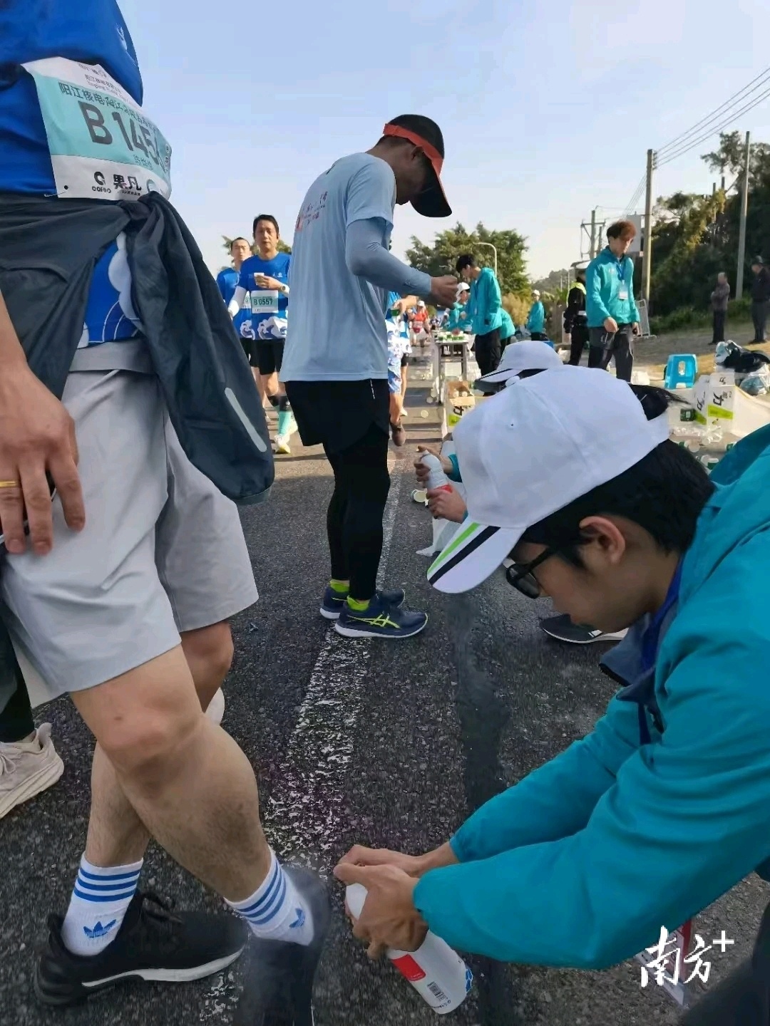 他们分布在赛道的各个补给点、医疗点,为经过的选手呐喊助威、鼓掌点赞,并及时为有需要的选手提供赛道指引、饮水饮料补给等各项服务工作。他们暖心相伴、保驾护航,繁忙的身影,热情的微笑,化身赛场上最美的青春风景线。