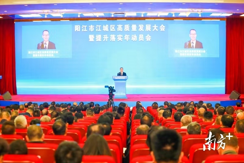 大会上,江城区委书记李仕鹏将大会置于这样的方位去思考:在省委、省政府连续三年召开高质量发展大会背景下,在“百县千镇万村高质量发展工程”取得初步成果、见成效背景下,在聚焦现代化产业体系建设,奔赴“再造一个新广东”的美好愿景下,在阳江市吹响“打好产业发展主动仗”“做实做强西海岸重要产业支点”的动员令和冲锋号中,江城,如何开新局?