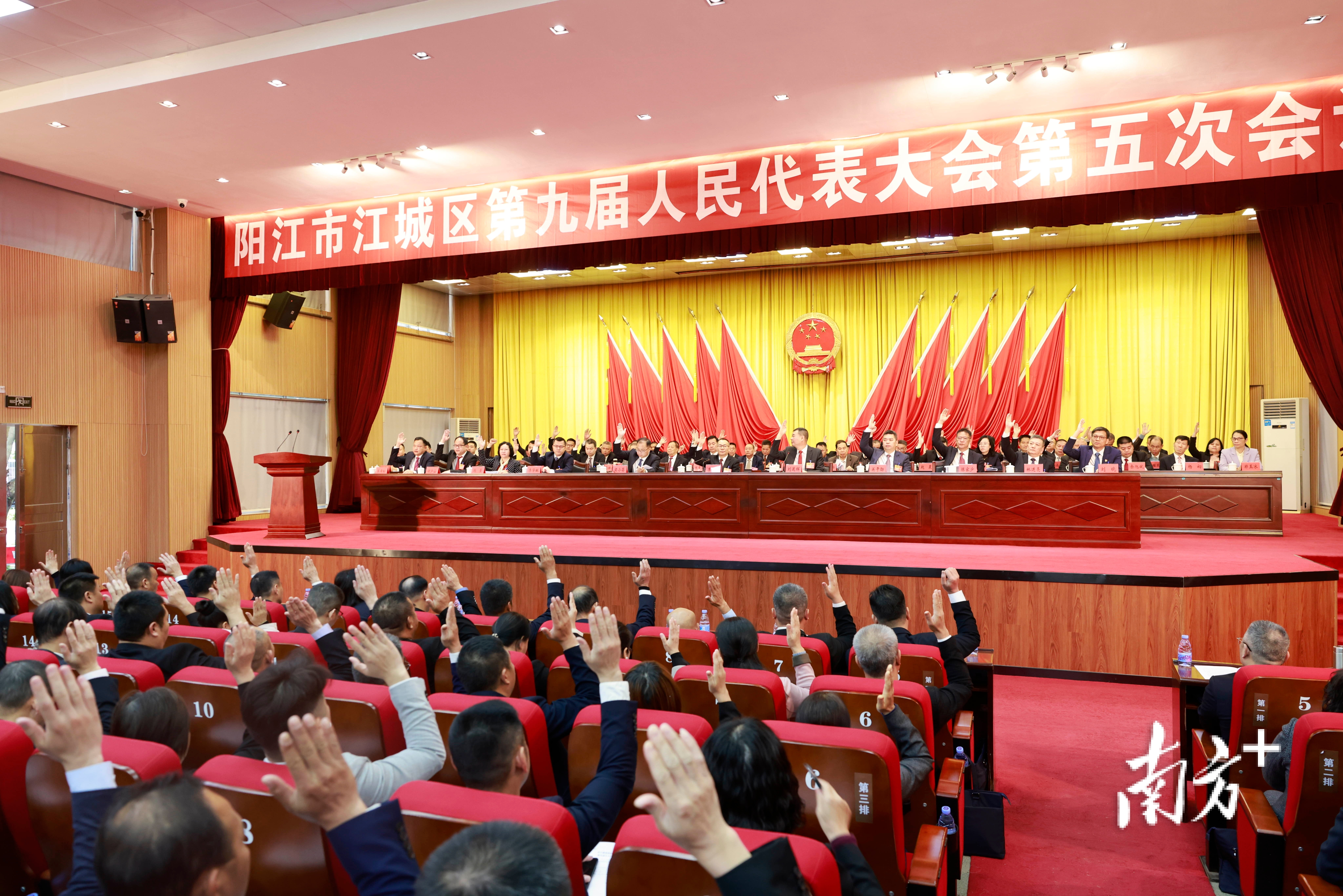 3月6日上午,江城区第九届人民代表大会第五次会议在区行政服务中心召开。来自全区各战线的人大代表肩负全区人民重托,聚集一堂,依法履职,共谋江城发展大计,共绘江城发展宏图。