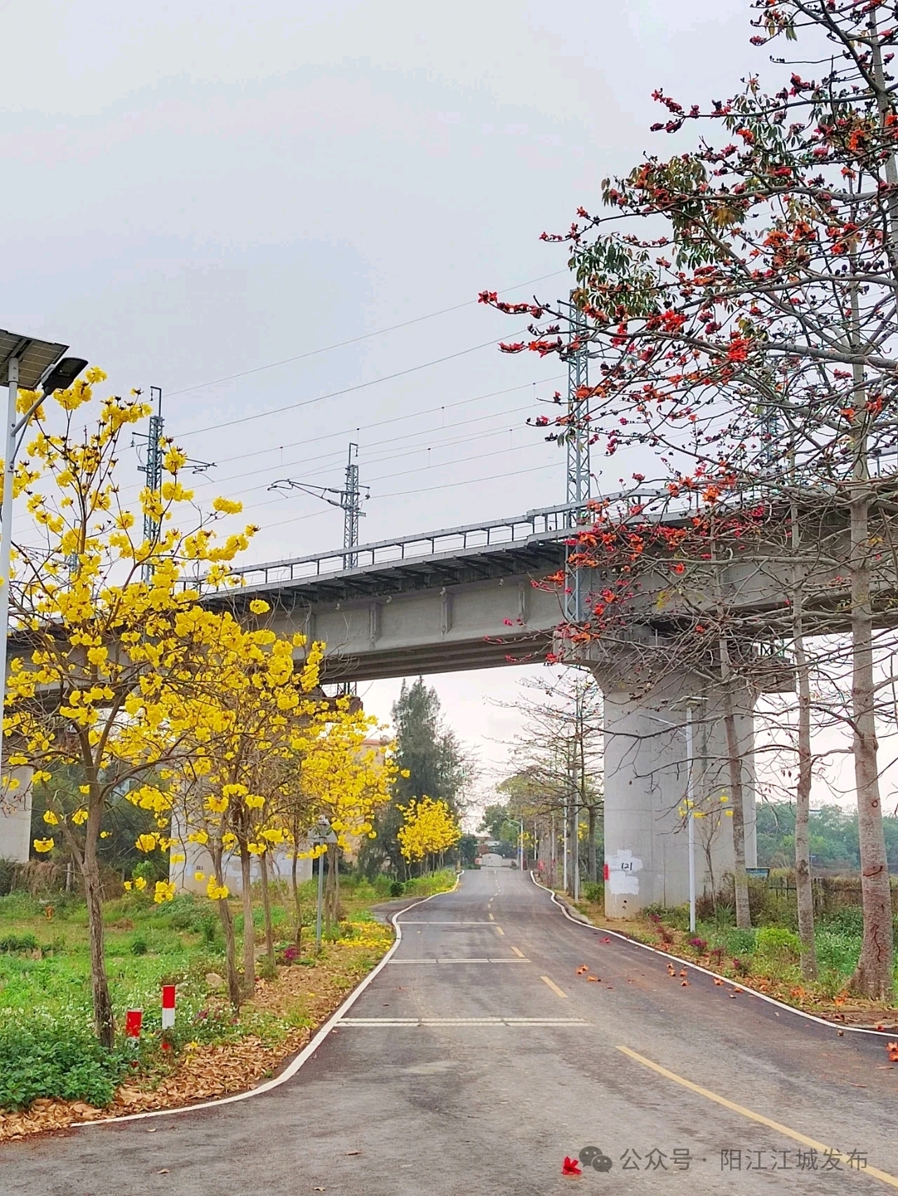 春临大地,繁花盛开。近日来,阳江市江城区城西街道龙湾村植龄路、阮西大道等道路旁的黄花风铃木迎来了开放期,美丽异木棉、黄花梨等绿植花蕾绽放枝头。